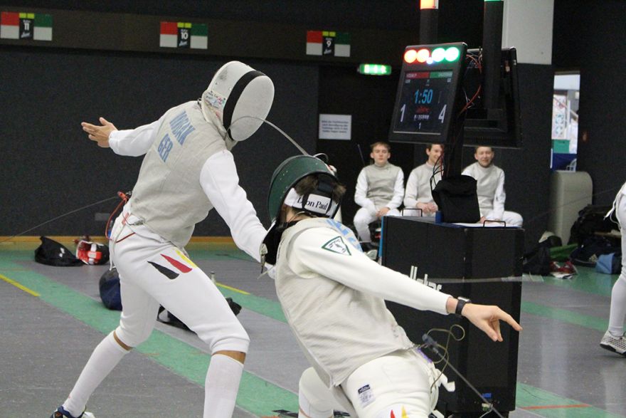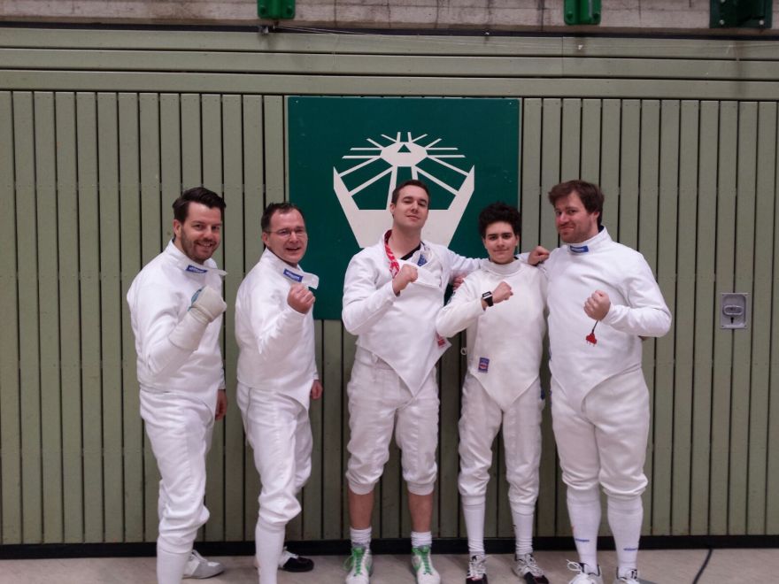 Am vergangenen Wochenende duellierten sich die besten Aktiven Florettfechter in Tauberbischofsheim bei den Deutschen Meisterschaften. Im Einzel konnten wir uns leider mit keinem Fechter qualifizieren, dafür haben wir aber eine Mannschaft stellen können. Sawwa Altmann, Max Both und Tim Sauermann haben den Ausflug an die Tauber angetreten. Die Vorrunde sah schon gut aus, mit Mannschaften wie KTF Luitpold München, PSV Stuttgart und CTG Koblenz waren jetzt keine Mannschaften von großem Namen dabei. Doch ein Fechter in der Runde war ein großer Name: Peter Joppich, denn er ficht für die CTG Koblenz. Unsere Fechter waren schon ganz aufgeregt und konnten es kaum erwarten, gegen den viermaligen Weltmeister anzutreten. Allerdings sollte das eigene Gefecht dabei nicht vergessen werden und so gab es manch unkonzentrierte Aktion und unnötige Treffer konnten gesetzt werden.